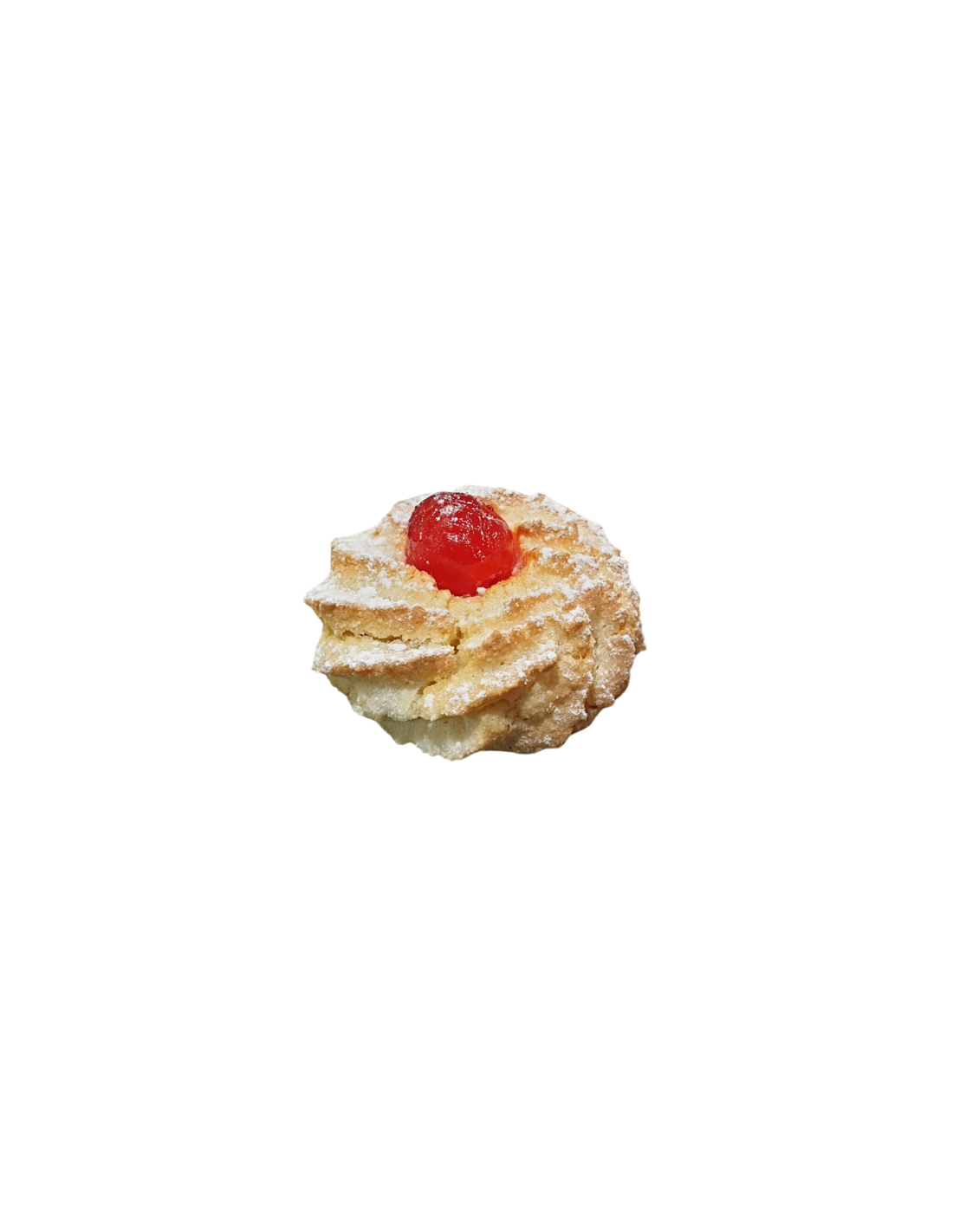 La decorazione con la ciliegia rossa candita non è solo un dettaglio estetico: il suo sapore leggermente zuccherino si sposa perfettamente con il gusto intenso della mandorla, regalando un'esperienza di gusto unica. Questi dolcetti sono perfetti per accompagnare tè, caffè o liquori, ma anche come regalo raffinato in ogni occasione.